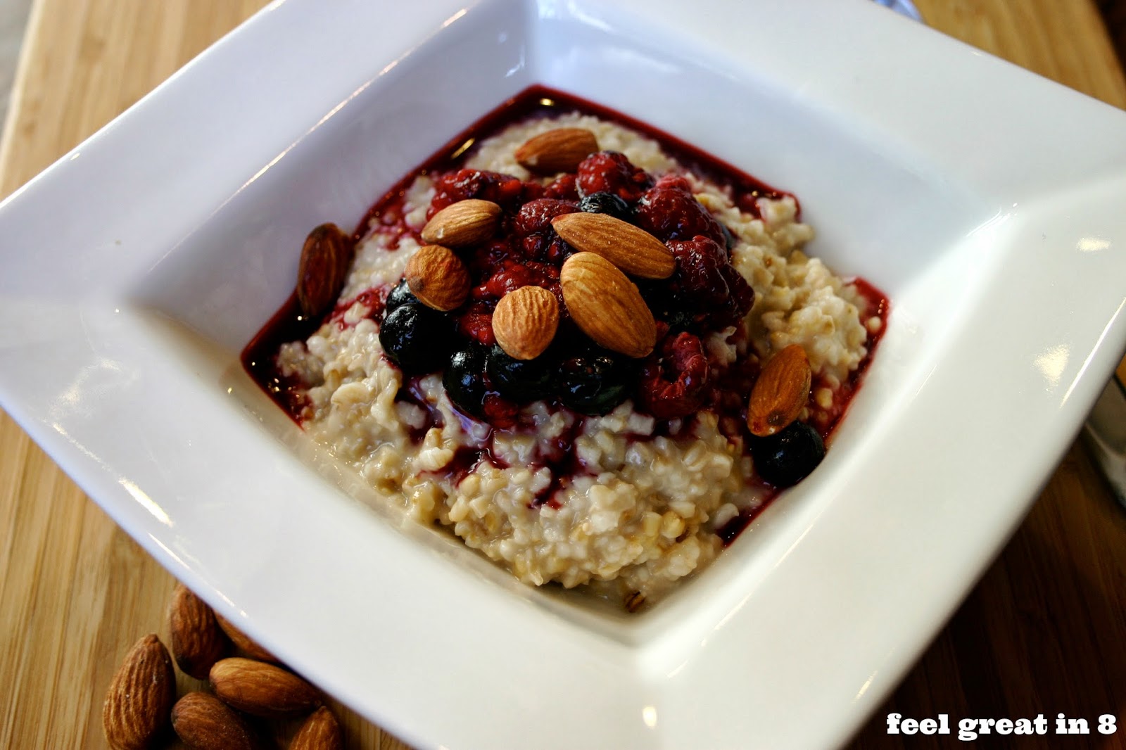 Day 1 Recipes Breakfast 2 servings Strawberry Cream Steel Cut Oatmeal before bed. Cook on Low heat overnight. If you do not have a slow cooker, soak oats in 2 ½ cups water in a pot overnight. ... Doc Viewer